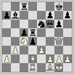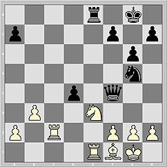 31...Rxe4! И теперь, естественно, плохо как 32.Qxe4 Nh3+! 33.Kh2 (33.Kh1 Bxe4 34.hxg5 Nxf2+) 33...Bxe4 34.hxg5 Nxf2. Ни 32.hxg5 Rxe1 33.Qxb7 Rxf1+! 34.Kh2 (34.Kxf1 Qb1+ и мат) 34...Qxg5, и чёрные остаются с двумя лишними пешками.