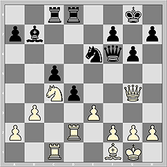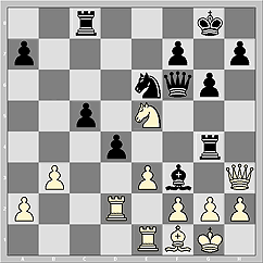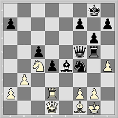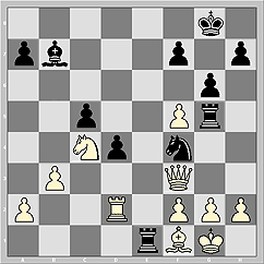 30...Ng5 31.Qxg4 (ферзя долой с доски!) 31...Bxg4 32.Nxg4 Qd6 33.exd4. «Упорнее было, как указал Л. Пахман, 33.f3. Теперь белые проигрывают форсированно». 33...Qf4 34.Ne3 cxd4 35.Rc2 Re8. Может быть, лучше было 35...Rxc2 36.Nxc2 Qd2; или 35...Rc3 36.Rxc3 dxc3. Но наверняка тут уже давным-давно шло цейтнотное «шлёпанье».