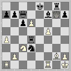 В партии же было сыграно 33.Rc3 и чёрные, в конце концов, устояли. Но не ради этих сведений приводится здесь эта партия. А ради возможного в позиции на первой диаграмме сногсшибательного 28.Qxe6+!! Нечасто в тяжелофигурном эндшпиле можно встретить почти «позиционную» жертву ферзя (ну, разве что в этюдах). 28… Rxe6 29.Rxh7. И, как мне кажется, и эта позиция вполне заслуживает диаграммы.