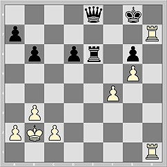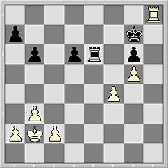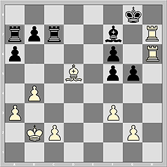 В позиции, возникшей вследствие безобразной игры белых, и не очень точной игры их соперника, на диаграмме ожидается 34-й ход чёрных. После случившегося хода 34...Rf4+, забудем о том, что было в этой партии до, а заодно и о том, что случилось после. Ничего добавляющего уважения читателя к автору как к шахматисту там произойти не могло. Более того, показать полную запись этого поединка меня сможет заставить только высший шахматный суд, в котором будет рассматриваться вопрос о легальности этой позиции. А то ещё найдётся привереда, который будет допытываться: «А как это слон попал на с7?» Как, как. А вот так! Потихонечку…