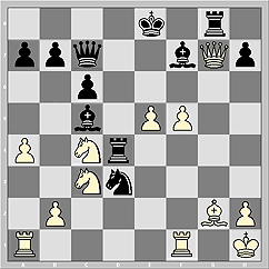 Но вернёмся к положению на последней диаграмме. Ясно, что «взятие ладьи вело к мату - 29...Kxh7 30.Nxe7+ Kh6 31.Rh1+ Bh5 32.g4». А «отступление 29...Bf8 нехорошо ввиду простого 30.Rdh1». Но вот «затянуть игру можно было путём 29...Nxb2 30.Rxg7+ Kf8 31.Qxb2 Qxb2+ 32.Kxb2 e6, что также не спасало, -