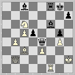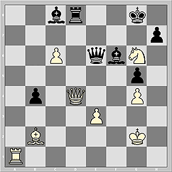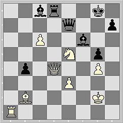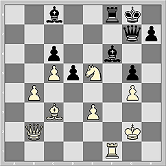 А теперь спасти чёрных может только попадание в самое яблочко. То бишь, исключительно ход в самый, что ни на есть, центр доски - 75...Qe4!! Только так!