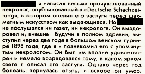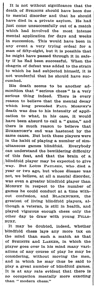 In February 1897 the New York Times prematurely reported his (Steinitz) death in a New York