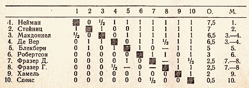 Если судить по результатам Стейница, то подходит только турнир 1867 года (Данди, Шотландия)