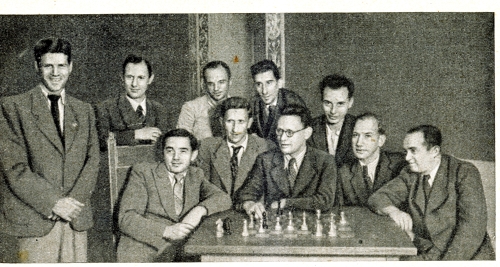 Стоят: Лилиенталь, Болеславский, Макагонов, Бондаревский, Бронштейн. |