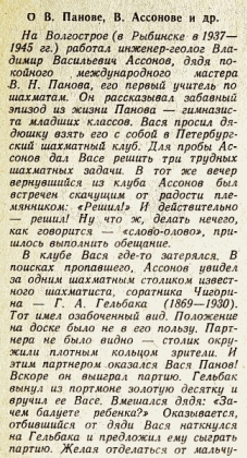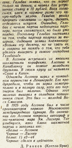 В 1925 году Ассонов (сильный любитель, дядя известного советского мастера N -,
