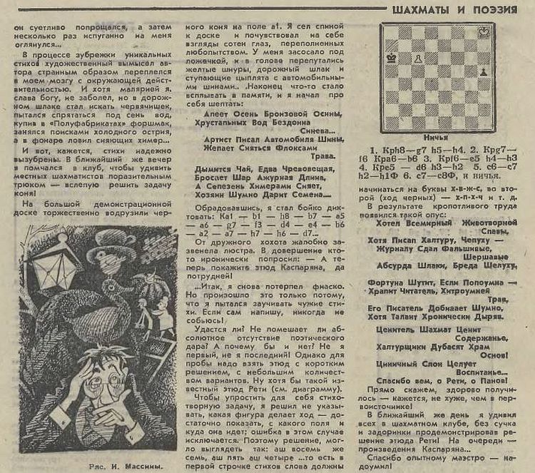 Памятуя о том, насколько завсегдатаи нашего форума неравнодушны к стихам (одни пишут, другие их за это ругают, но тоже иногда пишут) привожу начало стихотворения весьма известного советского шахматного мастера. Опубликовано в 1969-году