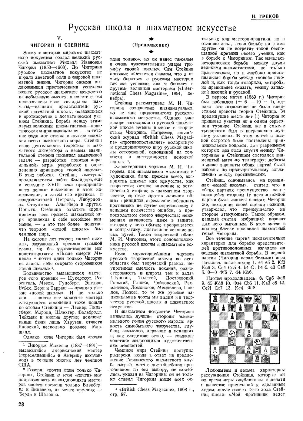 | Насколько я понимаю, эта статья (или ее бОльшая часть) вошла в книгу Грекова о Чигорине, выпущенную тогда же, в 1947 году (первое издание, кажется, было перед войной). |