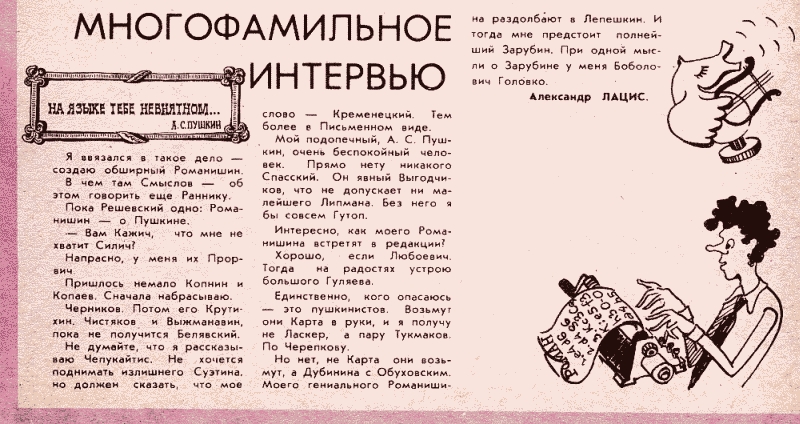 Здесь он просто вдохновлялся аналогичным рассказом с хоккейными фамилиями. Правда, тот ходил только в устном варианте. Да и был не вполне цензурен. Что-то такое: скинулись по Третьяку, взяли Ромишевского. Хорешовский, но Мальцев.