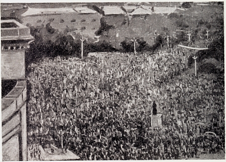 Хачатур Есаян - знаменитый армянский художник - дядя моего крестного отца. Я позвонил крестному и от него узнал, что дом Есаяна находился на ул. Саят Нова, прямо напротив площади Оперного театра. Он оттуда рисовал толпу следившую за партиями. Я полагаю, что рисунок, который вы поставили, принадлежит его кисти. |