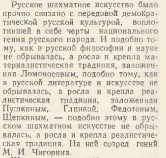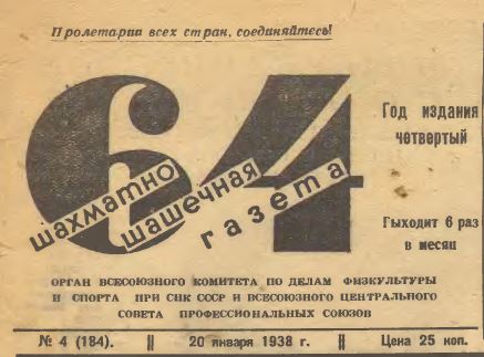 | "...4-й номер газеты «64» от 20 января не содержал ни одного слова о шахматах. Он целиком был посвящен итогам сессии Верховного Совета СССР и решениям очередного Пленума ЦК ВКП(б)." |