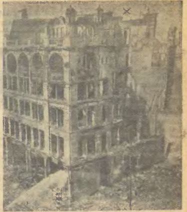 А вот страница книги, чудом сохранившейся после одного из таких налетов фашистской авиации на Лондон.