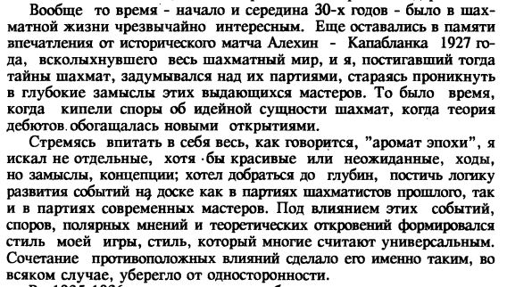 Vova17: Судя по отрывку, Смыслов был шахматным диалектиком: из противоположных влияний вырабатывал свой синтез.