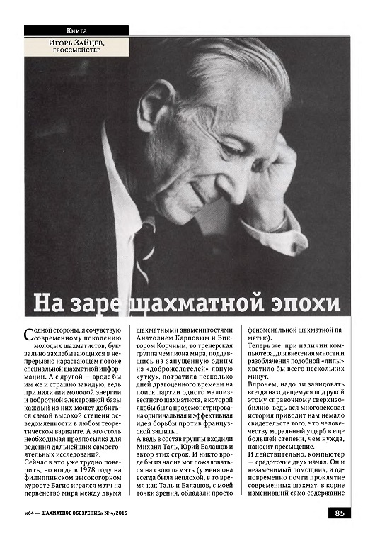 Замечательно, что современный "64" публикует шахматно-философские статьи, хотя философия нынче и не в почёте. Меня не удивляет также, что теперешний журнал "64" много места отдает железнодорожному транспорту - коммерческая составляющая... Но как объяснить внимание шахматного журнала 1939-го года к трудовым подвигам мастеров паровозовождения? Видимо, советским трудящимся исподволь внушалась мысль, что шахматист со всяким делом справляется лучше, чем человек, вовсе не знающий шахмат. И это было мудро и правильно.