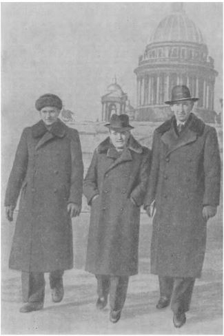 В 1947г. в Ленинграде проходил 15-ый чемпионат СССР. Рискну предположить, что на фото Керес, Флор и Смыслов.