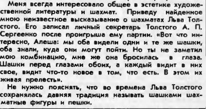 Однако Толстой сказал это о шахматах, из чего можно заключить, что в шахматах, как в жизни... А насколько мне помнится, к подобным мыслям Вы прежде относились критически. |