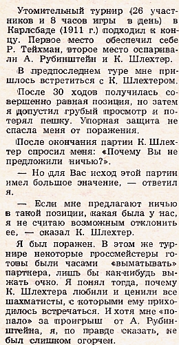 Solovey: "...выигрывает не более способный, а более сосредоточенный игрок." Э.ПО. Не более умный, а более сообразительный. Игра словами. Пустоватая.