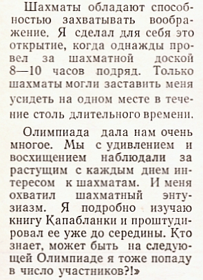 Но что меня удивляло, это как слабо блестящие шашисты и чемпионы играли в шахматы. Даже парень шашист второго разряда, с которым я играл, отлично проводил шашечные комбинации и был беспомощным в шахматах. Мой тесть мне на зависть решал шашечные задачи, а в шахматах мало что смыслил. Прямо как сообщающиеся сосуды: хорошо в шашки - плохо в шахматы. А у шахматистов сильнее меня я выигрывал в шашки. Рашид Нежметдинов - уникальное явление.