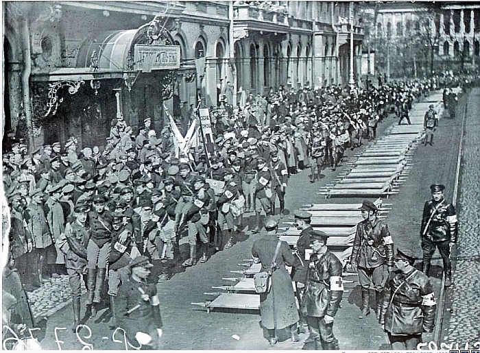 1920 Санкт-Петербург. Парад отдела скорой помощи на площади Искусств.