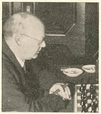 — Это было в 1911 году на турнире в Карлсбаде. В одном из туров мне пришлось играть черными против Нимцовича. Пришли мы вовремя, поздоровались, сели за свой столик. Над первым ходом Нимцович основательно задумался. Я прошелся по залу, заметил в киоске интересный журнал, купил его. Вернулся на свое место. Смотрю: Нимцович все еще думает. Я начал читать журнал. Так прошло около двадцати минут. Наконец, ход сделан: 1. е4. Я понял, что игра идет на «психологию». Видимо, мне, 19-летнему шахматисту, дается «фора» в 20 минут. «Нет, Арон Исаевич, этот номер не пройдет, — подумал я. — На «психологию», так на «психологию». Я сижу и не отвечаю на его ход. Продолжаю читать журнал.