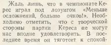 Говорят, что победителей не судят. Однако в статье, посвященной итогам 18-го первенства СССР (1950), Микенас написал: