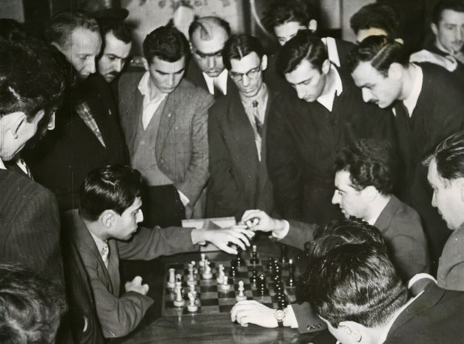 | 16-year-old Lev Polugaevsky during an August 1951 tournament (St. Petersburg Museum of History Archive). |