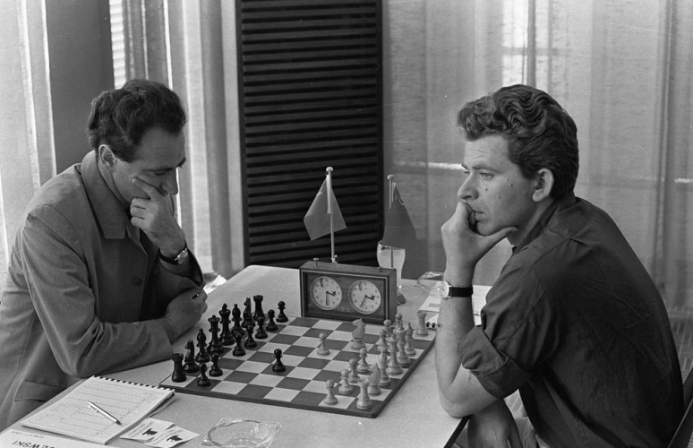 Отличная фотография из архива Российского государственного центрального музея новейшей истории: Михаил Таль и Лев Полугаевский проводят разбор своей громкой партии из финала 26-го чемпионата СССР, Тбилиси, январь 1959 года.