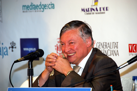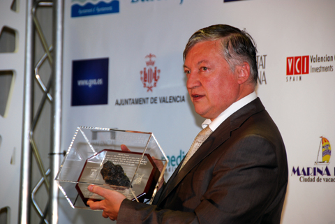 Валенсийский астроном Рафаэль Феррандо подарил экс-чемпиону мира по шахматам Анатолию Карпову копию астероида, названного в его честь.
