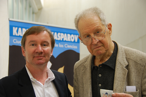 Dirk Jan ten Geuzendam (editor jefe de la revista "New in Chess") con Yuri Averbakh,