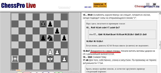 Магнус, Вас что, Каспаров учил на 16 ходу пускать слона на седьиую горизонталь и пешку на д6?