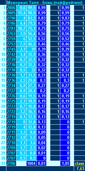 7,63 - оценка класса блиц-турнира, для тех кому такая оценка интересна (по распределению рейтингов в лайфрейтинге на 15.11.09)