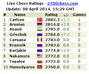 Грищук доказывает, что именно он должен был играть в Турнире Претендентов. Сейчас того и гляди - обскачет Ананда в текущем, и выйдет на третье место в мире.