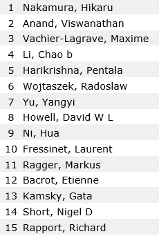 Неплохой состав. Правда из первой пятерки пока только один Карлсен. |
