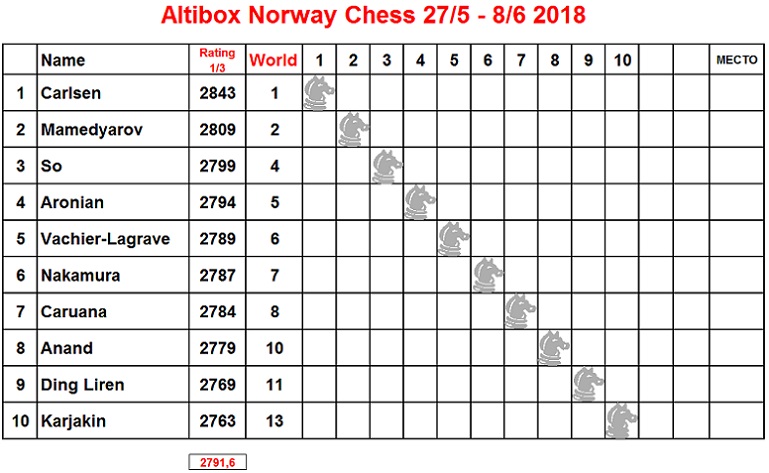Jacob08: | Почитатель: Altibox продолжает гнуть свою линию и таки может получить сильнейший турнир года. Добавили Накамуру, и сейчас известна половина из 10 участников Ставангера-2018: Карлсен, Ананд, Аронян, Мамедьяров, Накамура. (Т.Свенсен ожидает в составе также Крамника (?!!), Со, Каруану и МВЛ) |