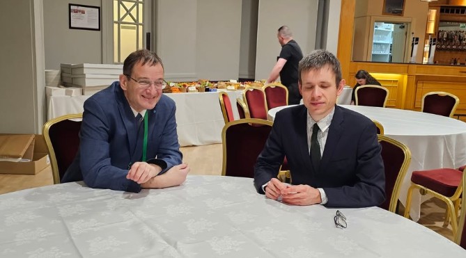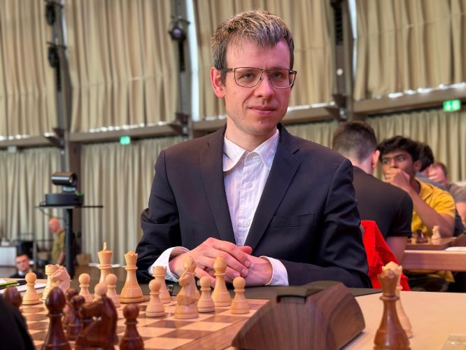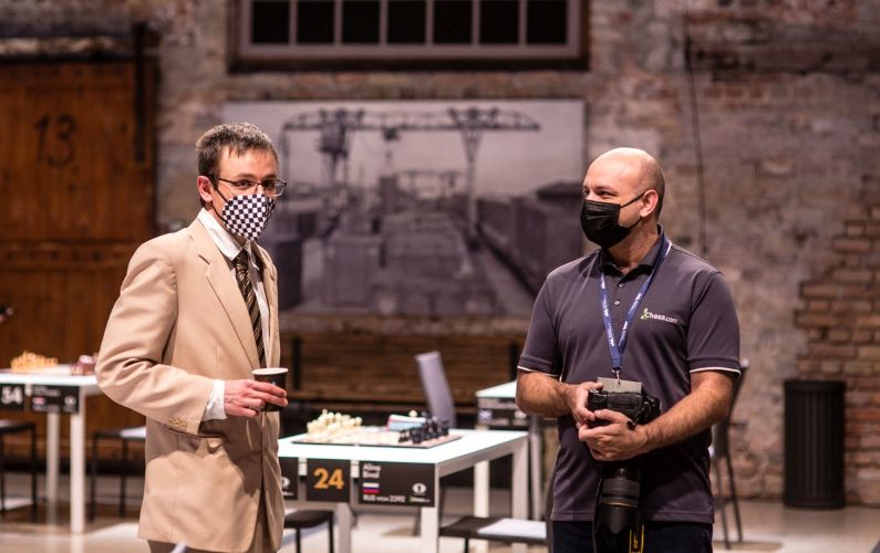 Два джентльмена шахматного мира — Михаил Красенков и Давид Навара на турнире FIDE Grand Swiss 2023.