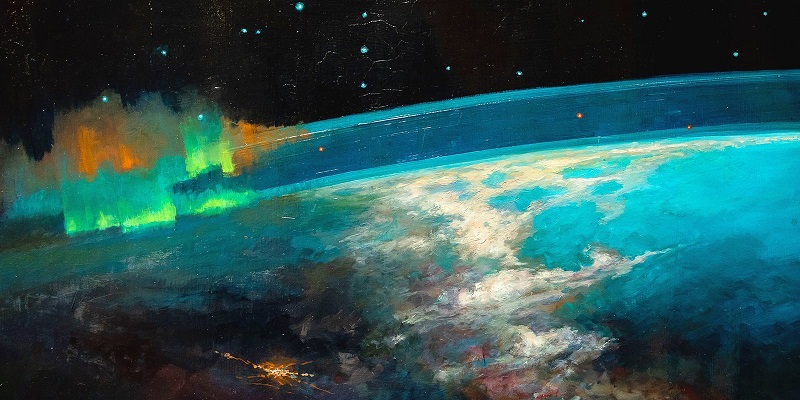 Этот рисунок он нарисовал 18 марта 1965 года, когда он с Павлом Беляевым полетел на «Восходе» и когда он стал первым человеком, вышедшим в открытый космос. На нем с натуры изображен восход солнца над Землей.