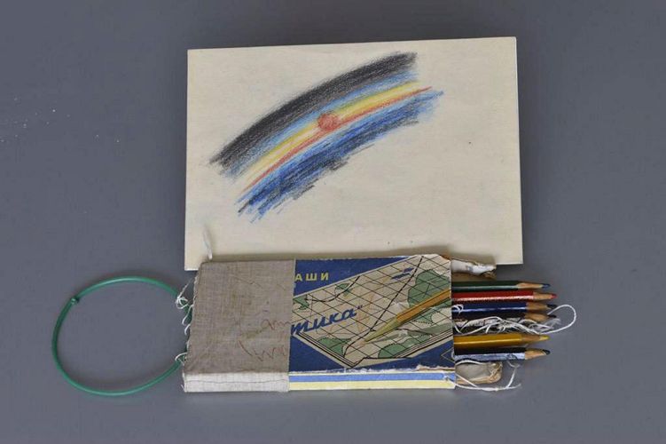 Ну да, тогда он взял с собой небольшую коробку карандашей, соединенных нитками с кольцом, чтобы они не разлетелись в невесомости, и он успел сделать хотя бы небольшой рисунок.
