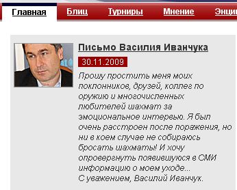 | Да, насчет Иванчука класс новость!!!!!!!! хотя в принципе никто и не сомневался)) |