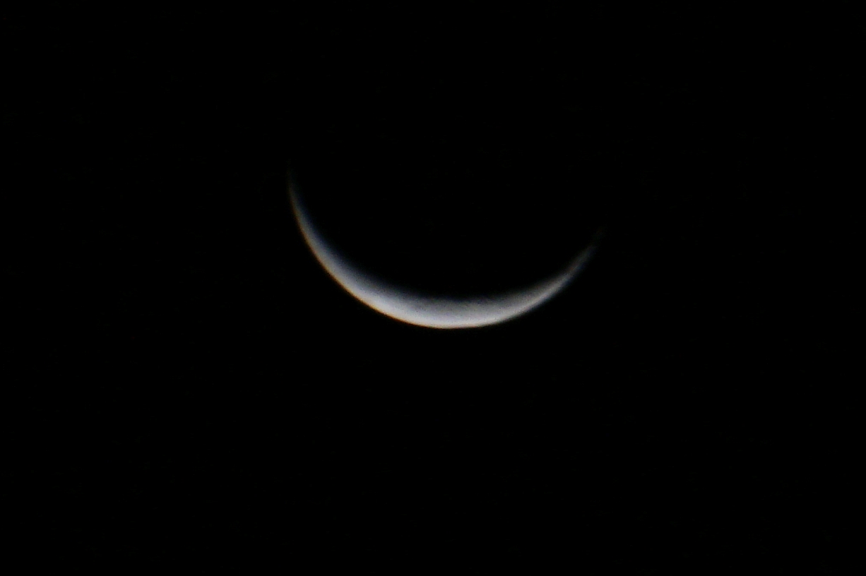 Сегодня в 6 утра ехал в магазин и увидел тонкий горизонтальный месяц (рогами кверху). Примерно за час до восхода солнца. Впервые такое вижу в северном полушарии, тем более далековато ж это от экватора (примерно 40-я параллель, это как Анкара, Афины). Я не астроном-любитель, так что не знаю как часто такое видят на этих широтах, но я - впервые. Попытался телефоном отснять, но он не хотел фокусироваться и ещё нужна была очень длительная выдержка.