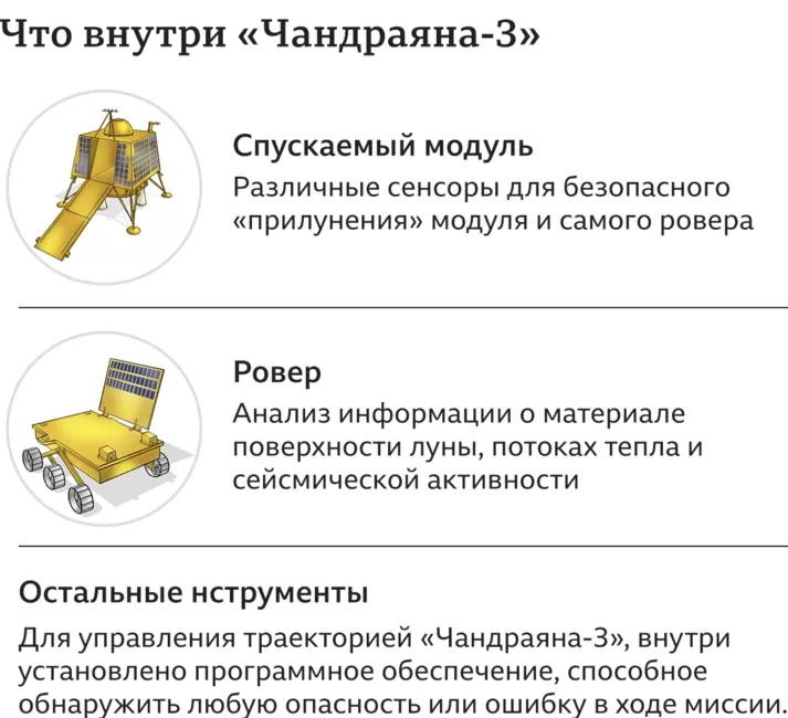 Лунный ровер "Прагъян", оснащенный различным исследовательским оборудованием, будет проводить химический анализ поверхности естественного спутника Земли. Миссия лунохода массой 20 кг рассчитана на 14 земных суток.