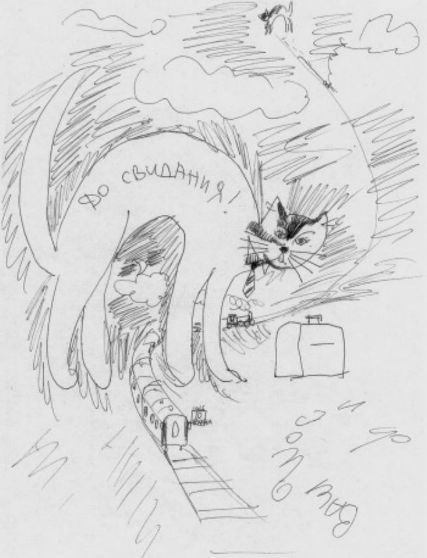 Комментарий Л.Сергеевой (это жена Андрея Сергеева (1)): "Иосиф всегда очень неохотно уезжал от нас, и однажды мы нашли на столе листок бумаги с этим котом."