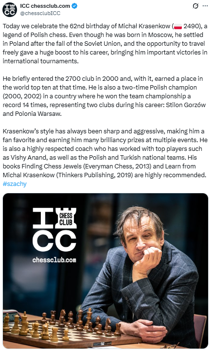 Michal Krasenkow is in Barcelona today, giving a 21-board simul co-organized by Ateneu Barcelonès and El Llobregat Open Chess Tournament.