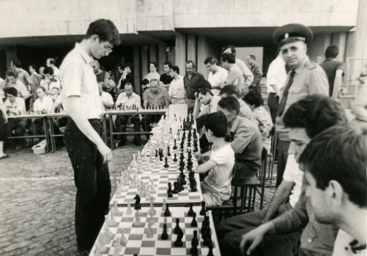 Не помню этого сеанса, но коллеги из Грузии утверждают, что это 1987 год. Это был массовый сеанс, который давали все ведущие шахматисты Грузии.