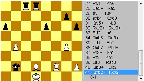 после 40ого хода ситуация смешная, король на б1 весь окружен...им наверное самим было смешно |