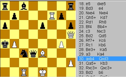| Обратите внимание и на партию Малахова: в непринципиальной схеме крепкий гроссмейстер разгромлен в 30 ходов! |