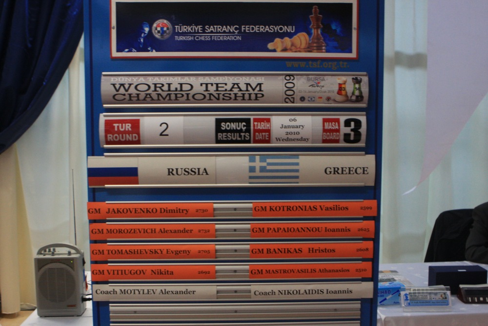 | Gildar: Большая просьба форумчанам - выложить пары второго тура с раскладкой по доскам (если таковая есть).Турецкий сайт я не смог открыть ни разу за 2 дня, следующий чемпионат проведут наверное в Африке. |