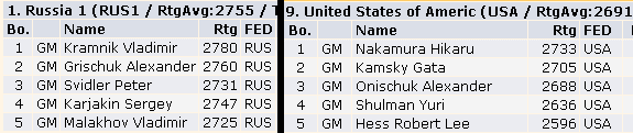5 1 RUS1 Russia 1 9.5 6 : 6 10.5 United States of Americ USA 9