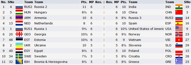 8 2 UKR Ukraine 10 5 : 5 8.5 Slovenia SLO 29