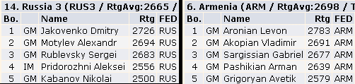 3 6 ARM Armenia 10 6 : 6 8.5 Russia 3 RUS3 14