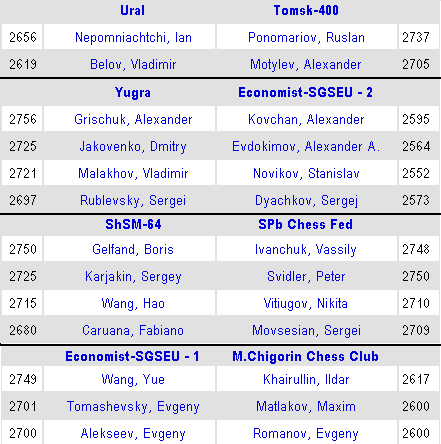 "Наш поединок с «Этюд-Контактом» никак не отнесешь к стыковым, но легкой прогулки не получилось. Чтобы не сбивать игрокам цвет, мы сняли обоих лидеров, и на первом столе нарисовался Ван Хао, который черными должен был завязать борьбу с Хенкиным. Этого гроссмейстера отличают хорошие дебютные знания, а также уверенность в том, что из трех возможных результатов наилучший - ничья. Каковая в районе хода 12-го была, разумеется, предложена. Наш боевитый Ван Хао, разумеется, отказался, играл после этого неточно и был в итоге наказан на 88-м ходу. «Вы ему передайте, что когда я играю белыми, со мной надо соглашаться», – торжествовал после партии Игорь. Игорь, мы, конечно, передать можем, но у нас немного другие представления о том, что такое шахматы. И мы надеемся, что Ван Хао, как и другие игроки нашей команды, будут и дальше отказываться от ничьей на 12-м ходу, кто бы ни сидел напротив."